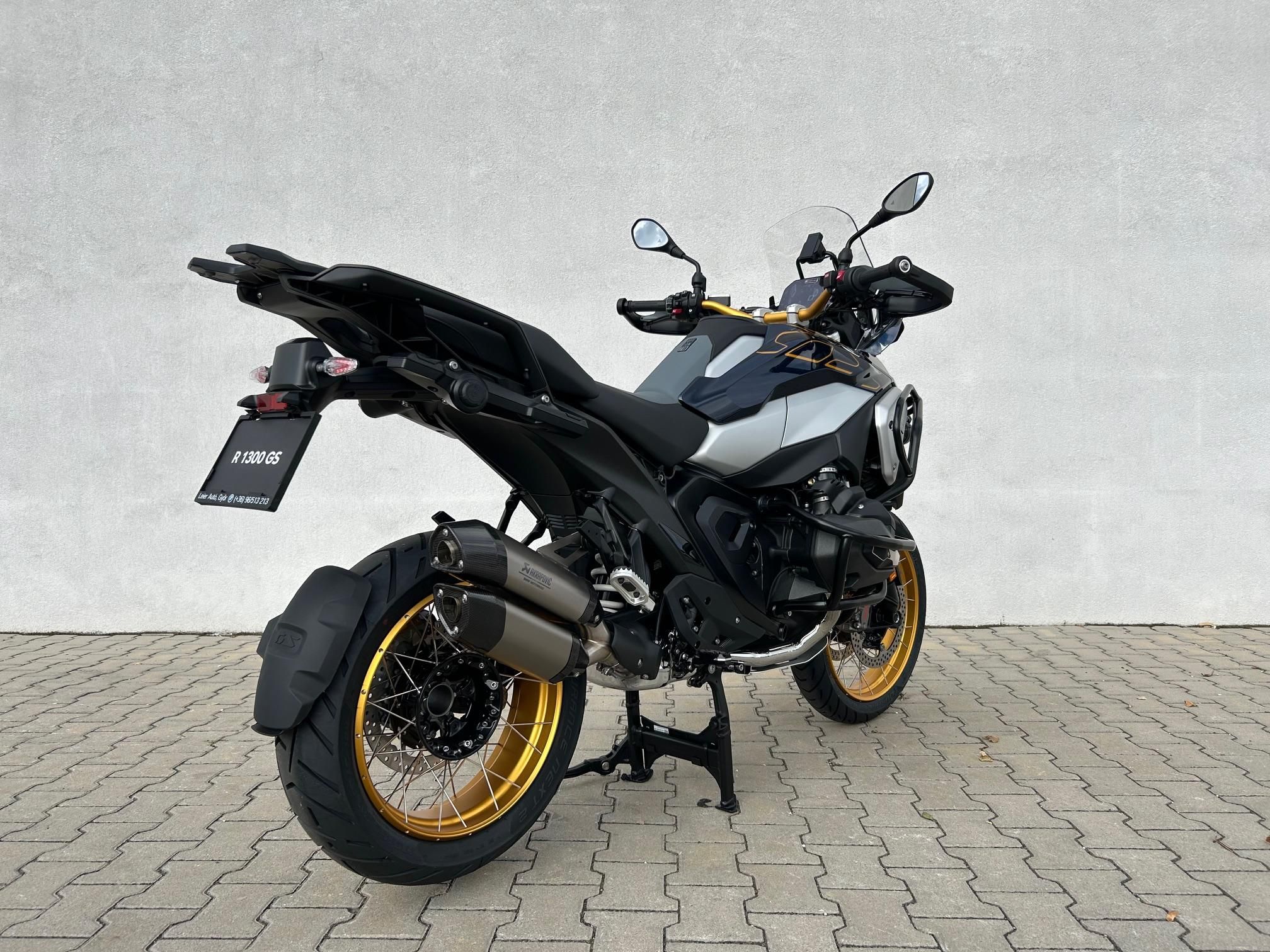 | Leier Autó BMW Motorrad Győr kínálatából ajánljuk Önnek BMW R 1300 GS típusú modellünket Option 719 kivitelben Komfort, Túra, Dynamic, Innovációs csomagokkal, Adaptív magasságállítással, DSA-val, Headlight Pro-val, Pro menetprogramokkal, Pro váltóasszisztenssel, Akrapovic dupla kipufogóval, Navigáció előkészítéssel, Sport fékekkel, Króm kipufogóval, Utas-csomaggal, Központi zárral, Ülésfűtéssel, Elektromos plexivel, Távolságtartó tempomattal, Vezetés támogató rendszerekkel, Riasztóval, Arany küllős kerekekkel, Komfort üléssel, Topcase-tartóval, Vészhívóval, Option 719 Billet Pack Shadow csomaggal, Puig fényszóró védővel, Wunderlich alsó és felső bukócsövekkel. Dokumentumok fülre kattintva további információk. Előzetes időpont egyeztetés után szeretettel várjuk márkakereskedésünkbe! |